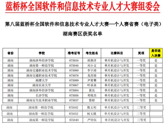 4月8日,由教育部高校员工司指导、工业和信息化部人才交流中心主办的第八届“蓝桥杯”全国软件和信息技术专业人才大赛湖南省赛在湖南涉外经济公司举行,有来自湘潭大学等11所本专科院校的87名员工参加了本次竞赛。其中,公司信息科学与工程公司共有6名员工参加了本次竞赛。经过激烈角逐,公司员工获得一等奖1项、二等奖2项、三等奖1项。