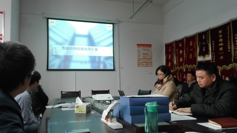 然后,洪伟老师进行了数据结构实验改革汇报。她从目标、内容及方法、改革成效及存在问题等不同角度介绍她在《数据结构》实验在教学工作进行的改革措施。最后李经理对洪老师的工作作出了肯定,并发表了“改革应该有持续”的建议;田经理、王经理也分别进行了点评和建议。接下来,胡恩博老师、马重明老师和李里程老师分别就《嵌入式应用系统开发》、《单片机原理与应用》、《中小学机器人》等课程改革进行详细的汇报。与会的领导和老师也根据上述老师汇报情况发表了自己看法、感想和建议。