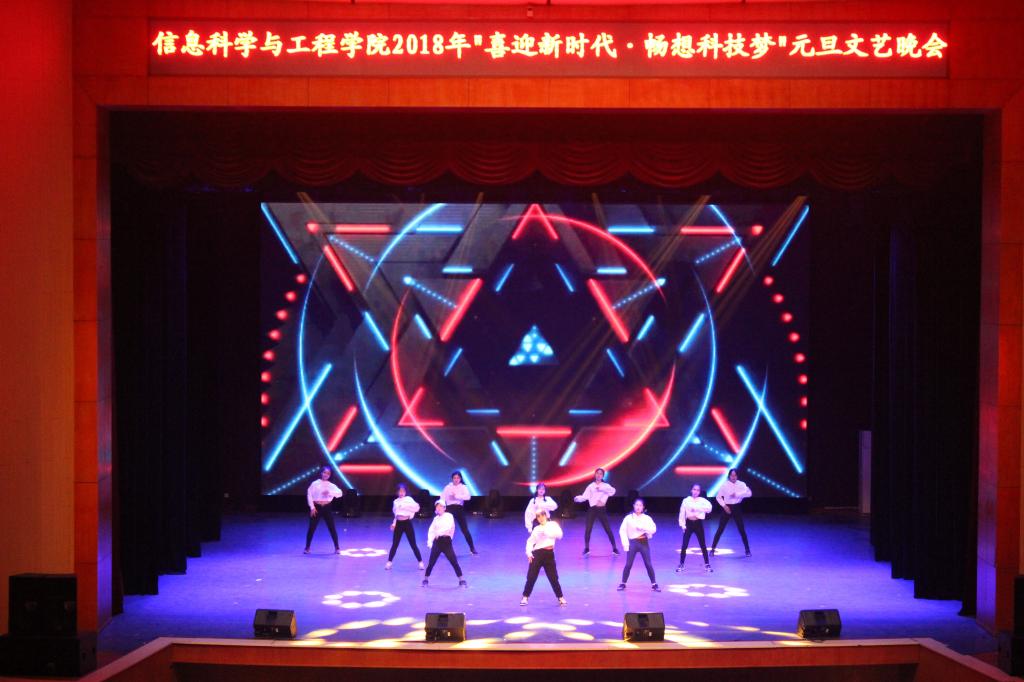 首先,一段精心拍摄制作、创意与科技感十足的视频作品简要回顾了同学们2017年的成长收获,收集呈现了领导、老师及同学们对2018年的期待与愿景。接下来,各班级、各艺术团队精心编排的节目炫丽登场:电子灯光舞《什么?机器人!》新颖酷炫,充分展现了同学们在工程创作方面的专业技能;爵士舞《Magic》热情洋溢,民族舞《风筝误》婉约唯美,器乐合奏《大鱼》高雅别致,完美诠释了青年员工将传统艺术与现代文艺的传承与对接;歌曲串烧《Wonderful》、《我们不一样》、《远走高飞》欢快动听,传递着浓浓的校园青春气息;小品《你的电脑我的心》套用经典电视剧桥段幽默诙谐地宣传展示了公司“电脑E家人志愿服务”特色工作;男子舞蹈《精忠报国》刚柔并济,诗朗诵《我骄傲我是中国人》豪情满怀,展示了青年一代牢记历史、为国奋斗,坚定自信迈进社会主义新时代的铿锵步伐;情景剧《夏天的故事》讲述了公司2017年暑期“三下乡”队伍在支教、扶贫、游学时发生的一幕幕感人故事,催人泪下;舞台剧《校园娱乐播报点》很好地融入了同学们的寝室文化、“三能三会”基本功及脑洞大开的科技创新能力,既展示了大家过硬的专业本领,又表现了青年一代蓬勃向上的精神风貌,更以青春的名义向全院师生发起了唱响新时代赞歌、点燃科技梦激情的响亮号召!整场晚会高潮迭起,掌声雷动。
