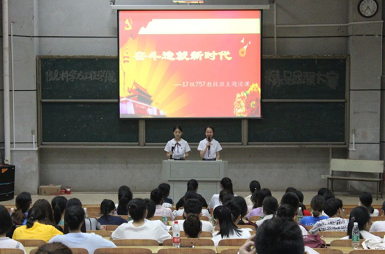 经过初赛,共有五个班级冲破激烈角逐进入决赛。决赛要求各班级采用政治理论宣讲、研讨辩论、文艺节目等形式,以 “学习贯彻习近平新时代中国特色社会主义思想,践行社会主义核心价值观”为主题进行现场班级团课展示。