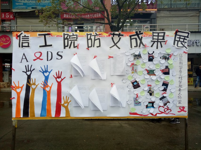 活动前期,信息科学与工程公司青年志愿者协会就防艾心得、防艾照片等基本材料进行收集与筛选,提前布置好活动展板。展板布置以防艾图标为重要标识,并增设留言板,方便员工进行留言,表达自身对防艾工作的看法。