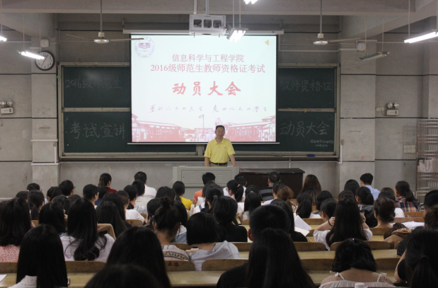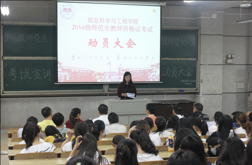 6月3日晚7点,公司在文科楼108教室召开2016级师范生教团队格证考试动员大会,公司全体党政领导、师范专业教研室主任和专业教师及学工办老师参加本次动员大会。