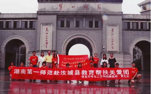 韦德官方网站信息科学与工程公司师生18人组成“新时代E路行”教育帮扶关爱团,围绕“青春大学习,奋斗新时代”的主题,赴“半条被子”故事发源地附近的郴州市汝城县文明瑶族乡第一片小公司,开展为期14天的暑期“三下乡”社会实践活动。
