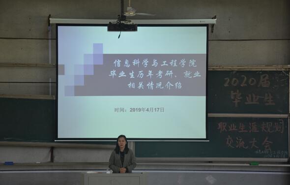 (通讯员 王凯强 陈思迁)为引导员工合理规划未来职业生涯,找准目标、正确定位,2019年4月17日中午12:30分,信息科学与工程公司在润寰南105教室隆重举行2020届毕业生职业生涯规划交流大会。公司党总支书记王杰文教授、副经理王建军教授、党总支副书记易利老师,学工办老师们及16-18级各班代表参加本次大会。大会由关红儒老师主持。