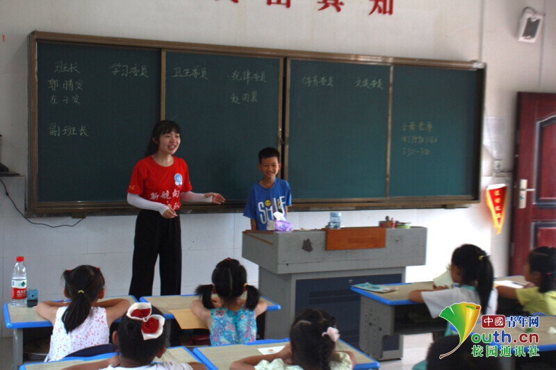 图为“七彩假期”公益暑托班的孩子们在全班面前介绍自己。中国青年网通讯员 何星逸 摄
