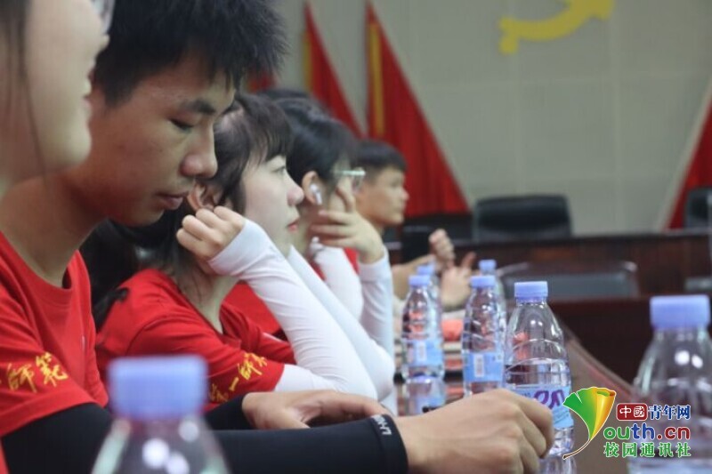 图为见面会上志愿者们认真聆听当地领导们的介绍与嘱托。中国青年网通讯员欧阳健摄