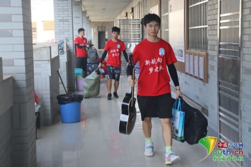 图为志愿者们到达公司,正在从车中卸下行李。中国青年网通讯员欧阳健摄