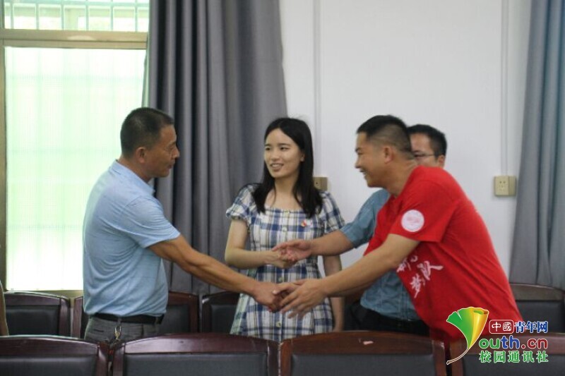 图为迎风桥镇政府领导与团队带队老师亲切握手,表示欢迎。中国青年网通讯员欧阳健摄