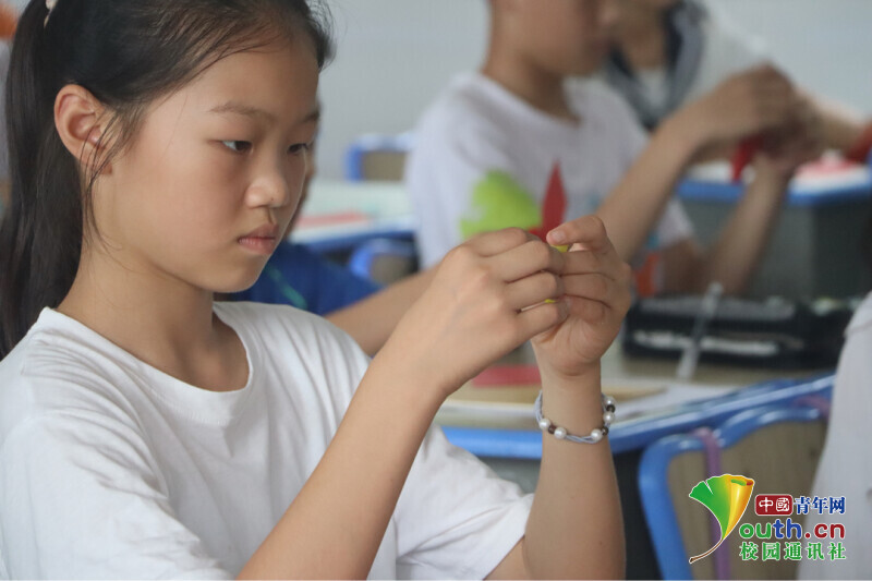 图为“红心向党”趣味手工课上,小朋友们正在认真折红心,红色卡纸在孩子的手里变成一个个红心。中国青年网通讯员 马唯一 摄