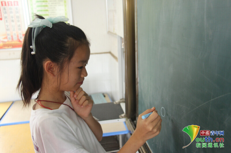 图为心理团辅课上班级同学认真思考自身的特点,在黑板上画下自画像。中国青年网通讯员 王彬艳 摄