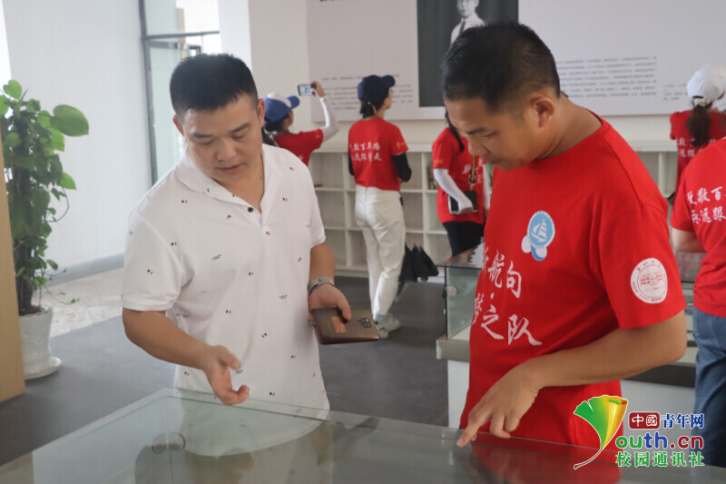 图为张国基纪念馆老师为新航向·梦之队志愿者解答张国基先生的教育初心。中国青年网通讯员 段新利 摄