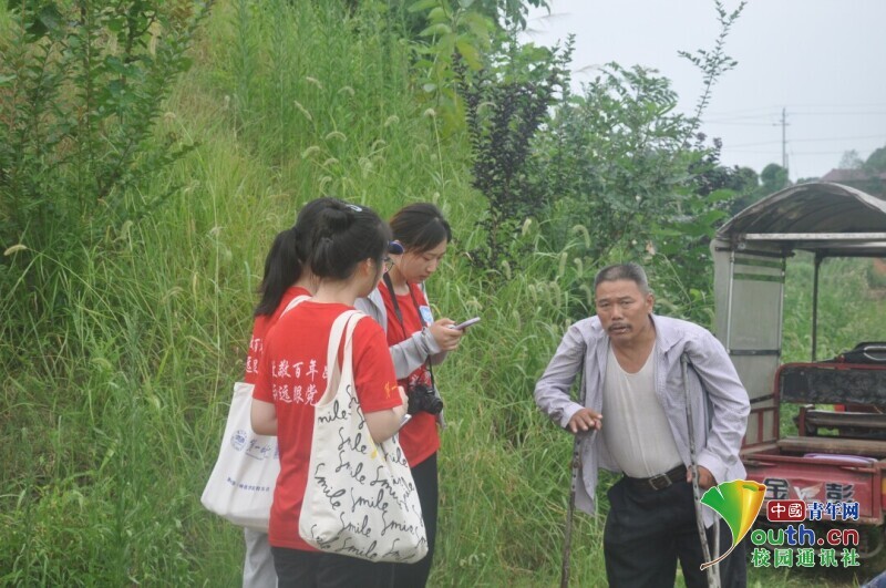 图为新航向·梦之队志愿者询问迎风桥镇居民是否了解国家老员工资助政策,并有针对性地介绍资助政策。中国青年网通讯员 欧阳健 摄
