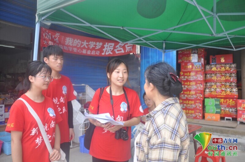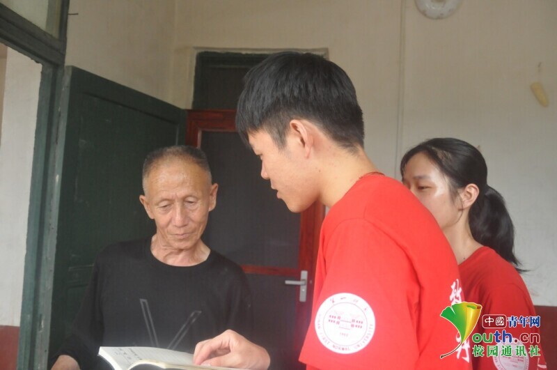 图为迎风桥镇当地居民向新航向·梦之队志愿者们了解国家资助政策方面的相关内容,志愿者们在认真为居民答疑。中国青年网通讯员 马唯一 摄