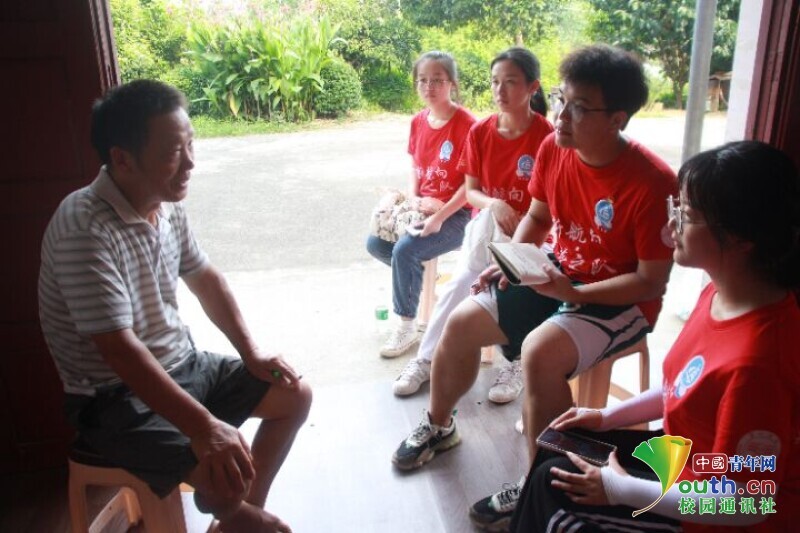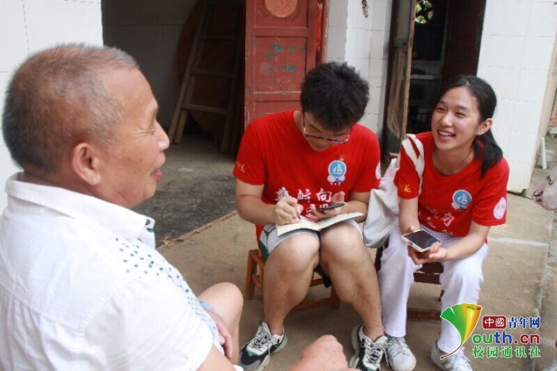 图为队员们正在对老党员廖忠华同志进行访谈并记录。 中国青年网通讯员 欧阳健 摄