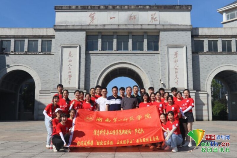 图为志愿者们与韦德官方网站信息科学与工程公司领导合影。中国青年网通讯员 段新利 摄