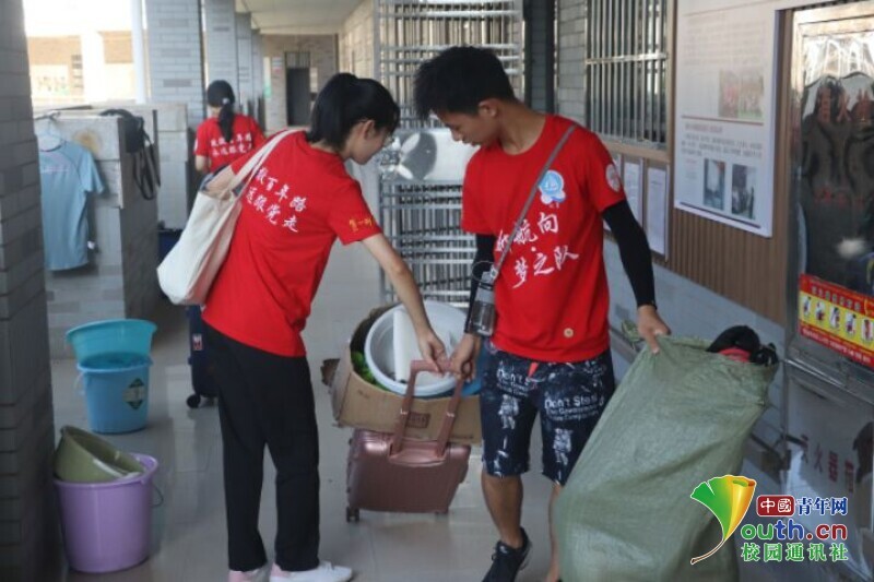 图为志愿者为明日开班仪式迎接孩子们的到来做准备。中国青年网通讯员 何星逸 摄