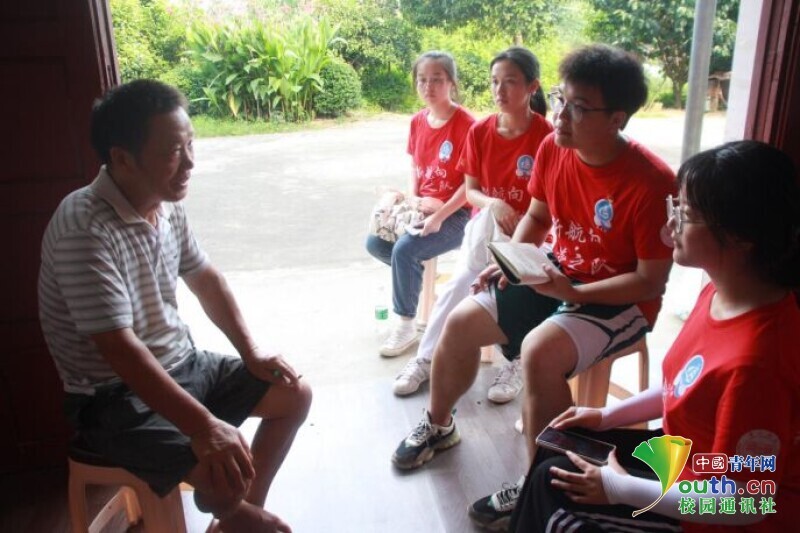 图为新航向·梦之队队员与老党员进行交谈。中国青年网通讯员 欧阳健 摄