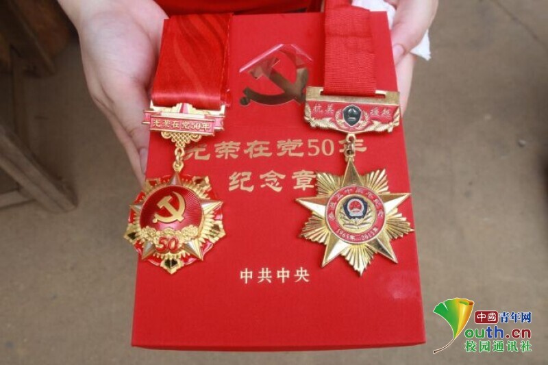 图为老党员党龄五十年以上勋章和抗美援越勋章。中国青年网通讯员 欧阳健 摄