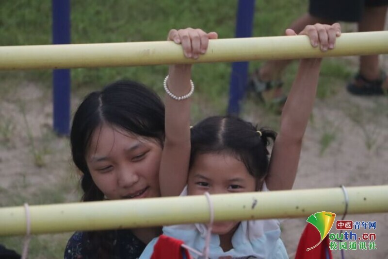 图为队员陪着孩子一起玩耍,孩子眼里充满了幸福与开心。中国青年网通讯员 段新利 摄