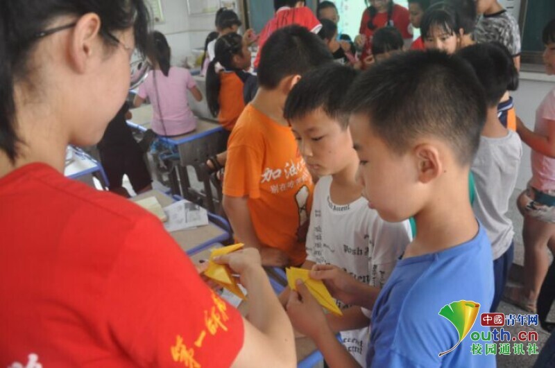 图为手工折纸课上,老师手把手教孩子如何折纸,孩子们全神贯注地听着。中国青年网通讯员 马唯一 摄