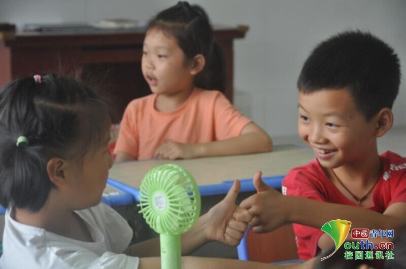 图为手语课上,孩子们根据老师的教学与同桌用手语互动,孩子们都感到新奇有趣。中国青年网通讯员 马唯一 摄