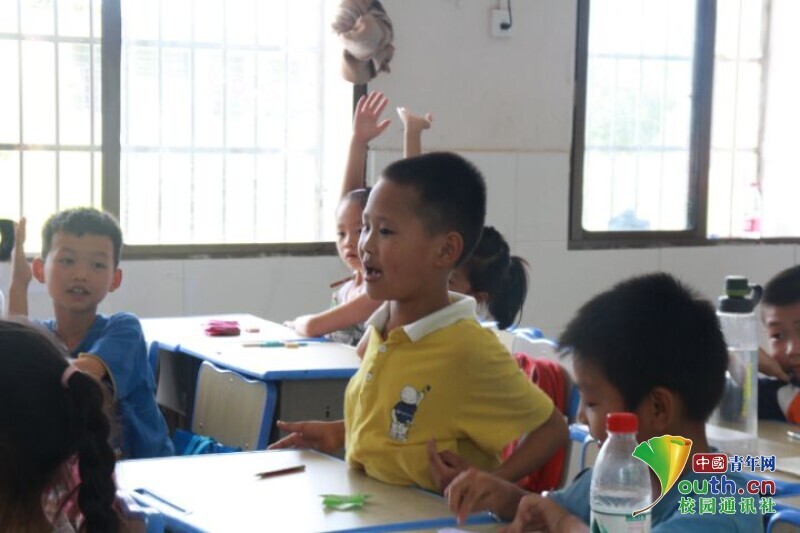 图摄为孩子们积极参与课堂,举手发表自己的想法。中国青年网通讯员 何星逸 摄