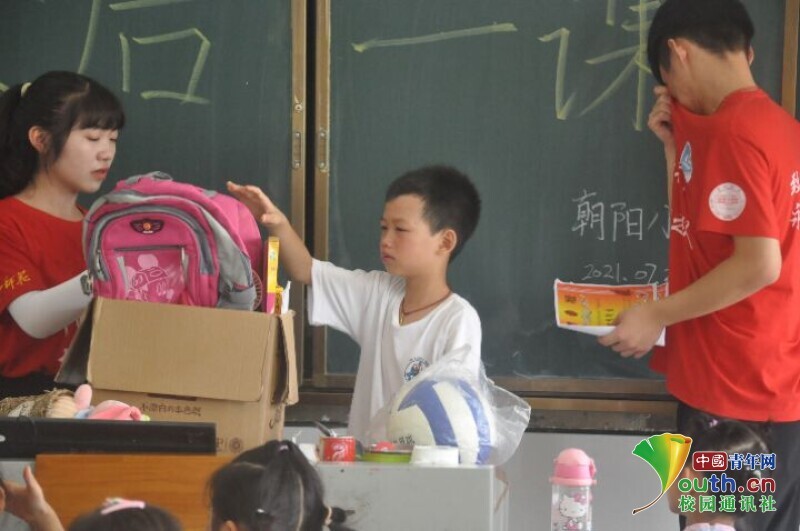 图为被评为本次七彩假期暑托班“优秀员工”的同学上台领取奖状并选取奖品。中国青年网通讯员 马唯一 摄