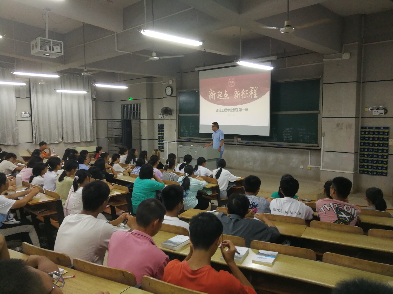 “人生新里程,心灵新旅程,学习新起点,知识新征程。”10月3日的怀中楼109,通信工程专业教研室主任孙元以“新起点 新征程 开启大学精彩生活”为题,为2021级新生开展专业教育。