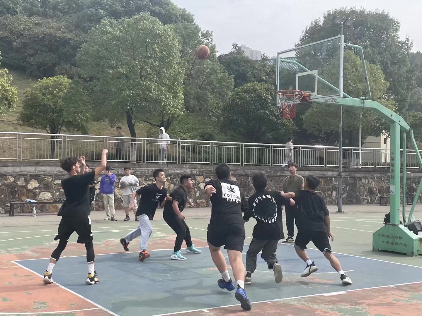比赛第二场对战双方是21电信联队和21教技/21计科1班/881/882联队,比赛同样激烈、精彩。除了互相的斗智斗勇,特别考验大家的还有下午的阳光,队员们在阳光下挥汗如雨。经过两个小时的鏖战,大家克服了投篮命中率低和体能极限的考验,最终21计科1班/881/882联队凭借体能的优势,以一个球的优势,率先达到80分,拿到一场珍贵的胜利。