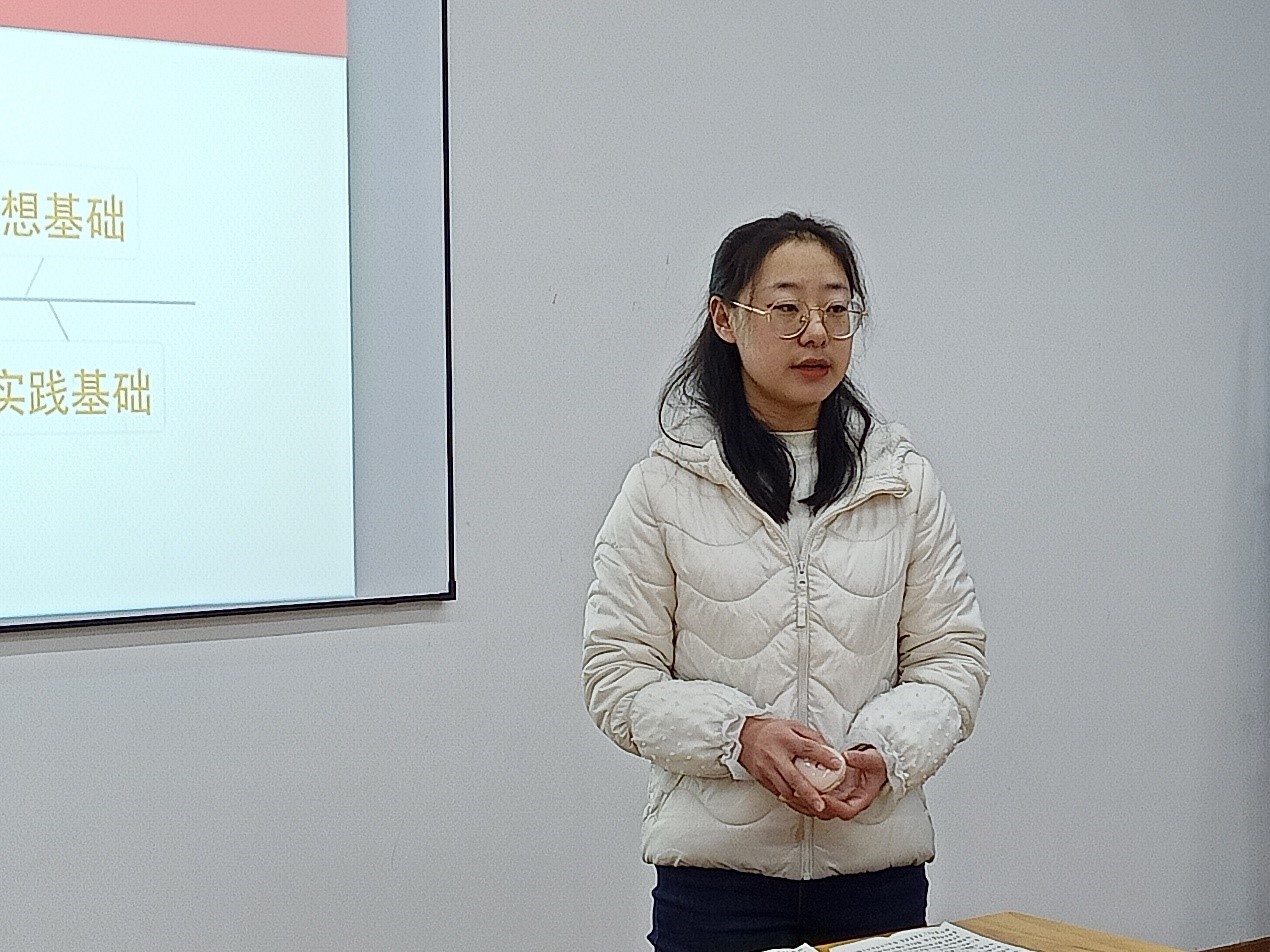 员工党员周景通过分享毛主席创立毛泽东思想的过程,号召同学们要加强对毛泽东思想理论的学习,多花时间在夯实理论之上,将学习、研究、宣传和实践毛泽东思想这一项伟大的事业进行到底。