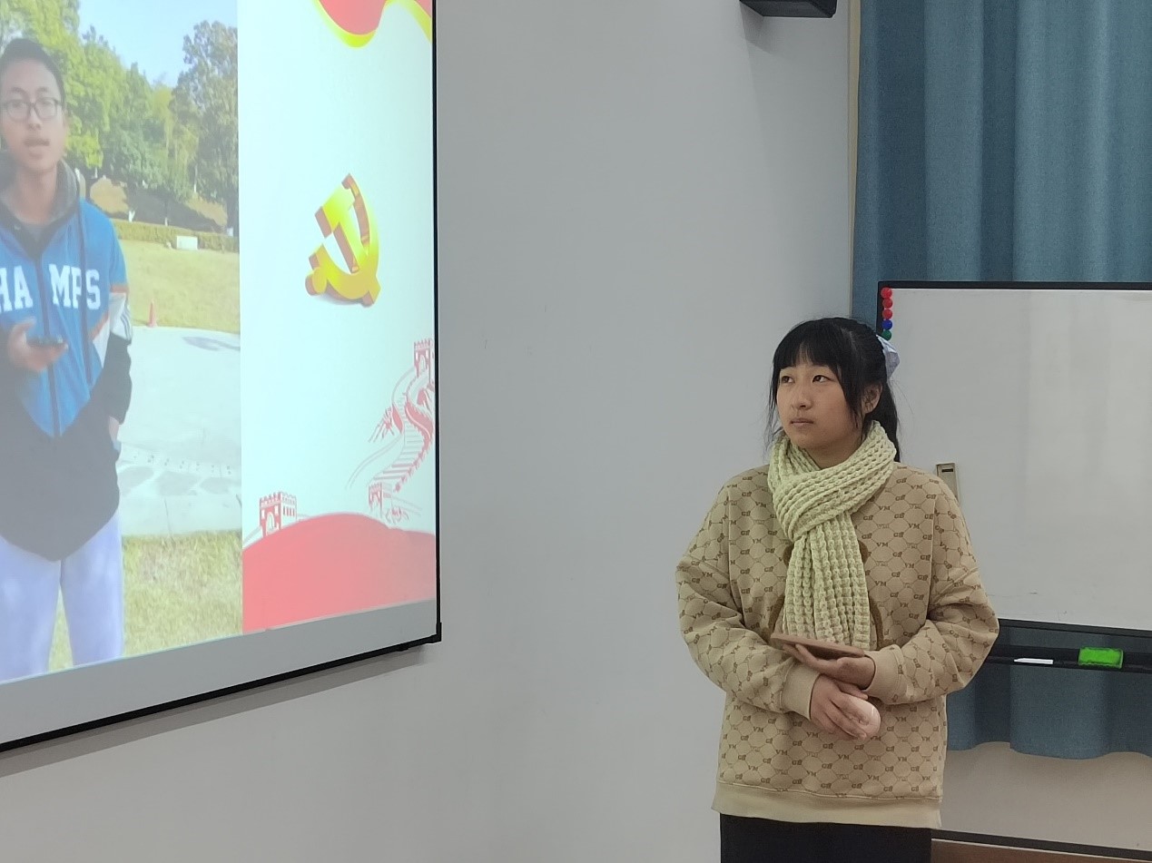 积极分子姜冰鑫通过讲述毛主席睡衣的故事让同学们领悟到毛主席艰苦朴素、崇尚节俭以及全心全意为人民服务的精神,并呼吁同学们要自食其力、勤俭节约、艰苦奋斗。