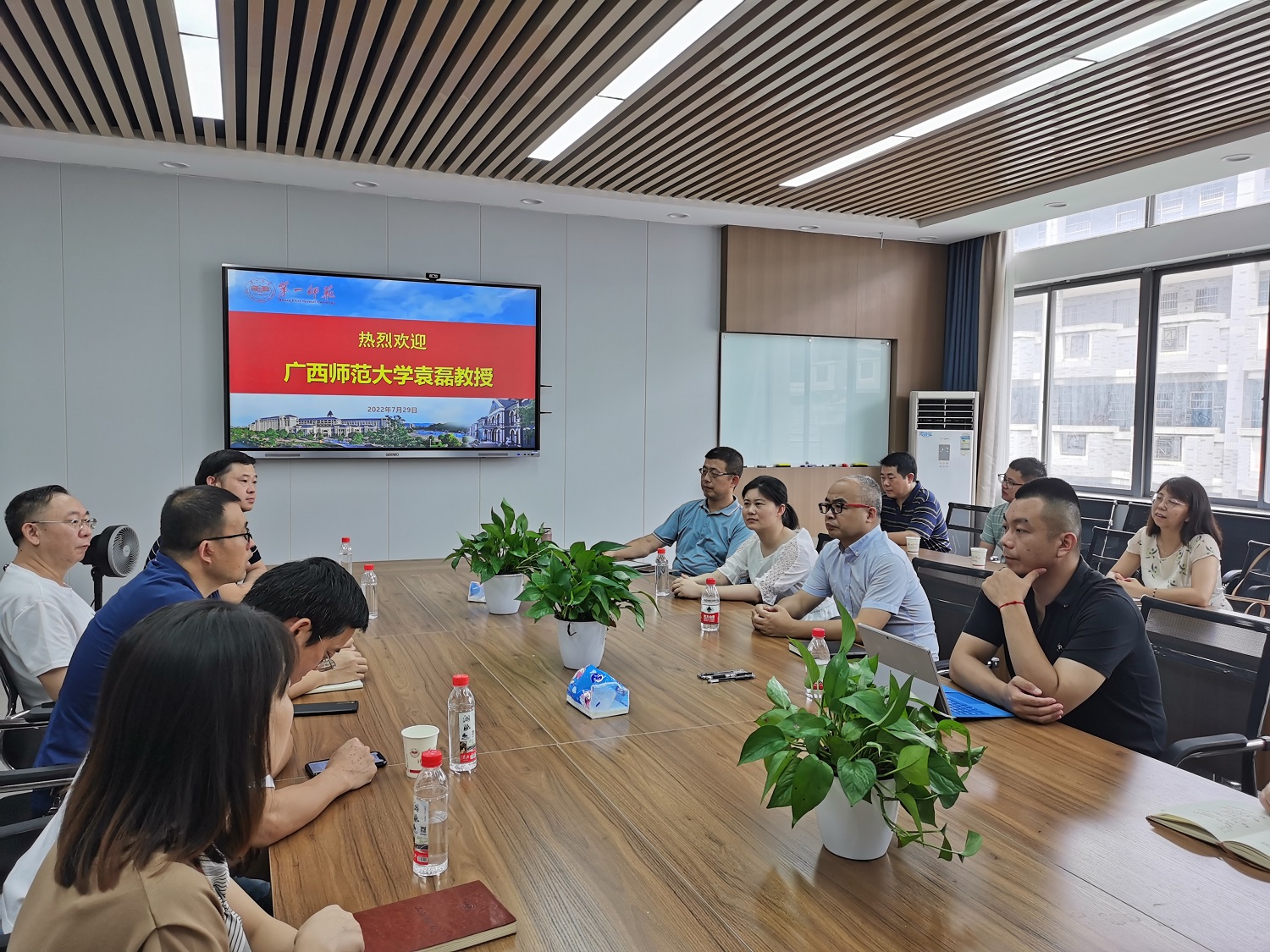 7月29日上午,广西师范大学教授、博士生导师,广西基础教育研究院常务副经理袁磊教授应邀来我院在玉衡楼406会议室开展一流专业建设经验交流会。广西师范大学苏瑞博士、湖南师范大学简婕博士、公司行政班子成员、部分教师参加此次交流活动,活动由副经理何向阳主持。