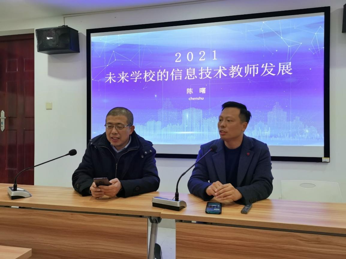 为了让六年制教育技术学专业师范生对未来公司和信息技术教师的专业发展有更明确的认识,全面了解中国现代化教育的规划,激励员工充分利用在校时间努力提升相关专业素养。2021年12月8日下午,岳麓区实验小学陈曙董事长在双创楼414为公司师生开展了“未来公司的信息技术教师专业发展”的专题讲座。讲座由何向阳副经理主持,公司党委书记刘立勇,经理满君丰,公司教师黄悦、刘琳、张卓林及19级817、818教技班员工参加了本次活动。