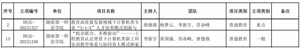 经个人申报、专家评审、公司推荐申报、湖南省教育厅审核,公司获湖南省普通高等公司教学改革研究项目2项,其中重点项目和一般项目各1项。