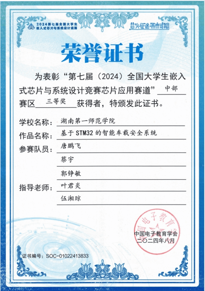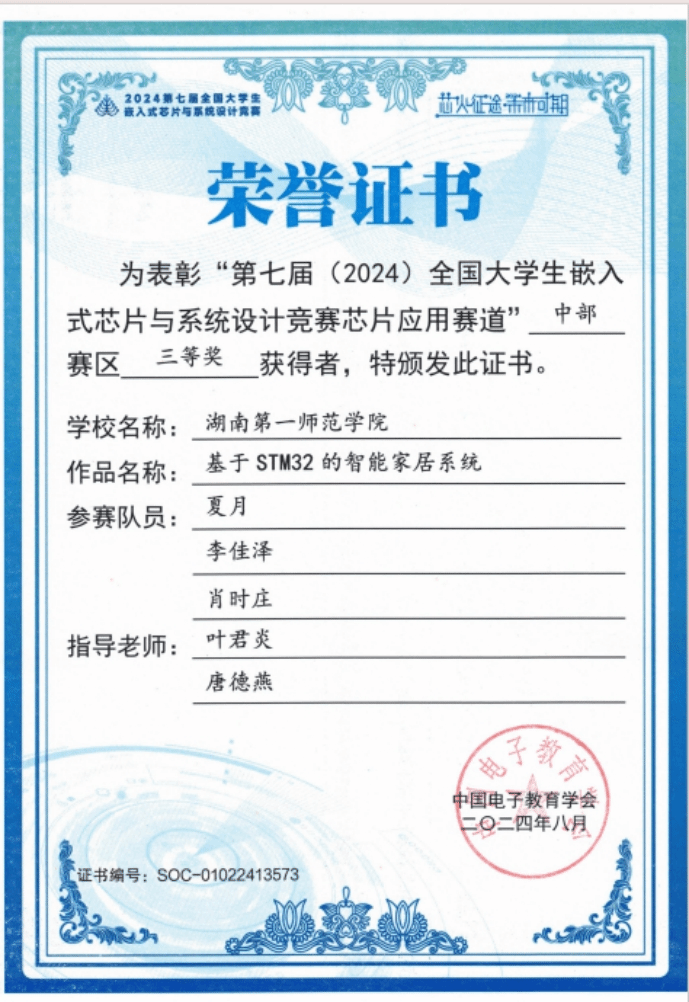 第七届(2024)全国老员工嵌入式芯片与系统设计竞赛圆满收官。该竞赛由中国电子学会主办、东南大学承办,是面向全国高校员工的权威赛事,已连续 4 年入选 “全国普通高校老员工竞赛排行榜”。此次比赛竞争激烈,公司首次组队参赛,在指导老师叶君炎的精心指导下,参赛员工凭借扎实专业知识与拼搏精神,于中部赛区荣获三等奖 3 项。
