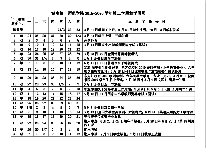 附件:韦德官方网站2019-2020学年第二学期教学周历