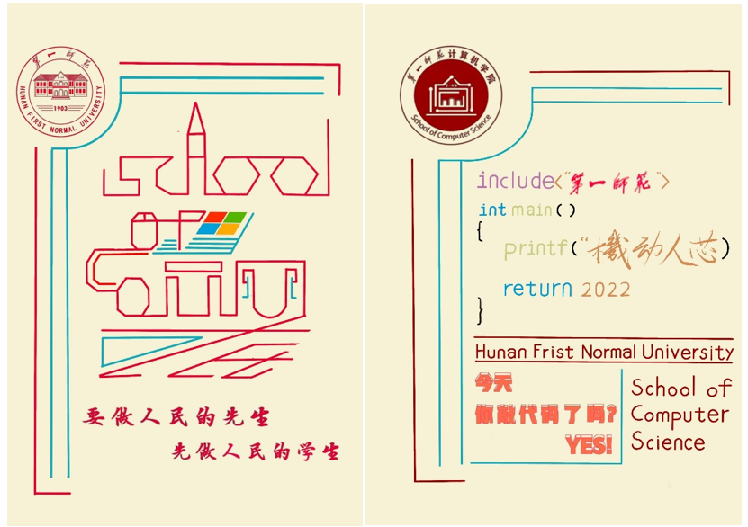 大赛收到原创作品21份,五份作品从中脱颖而出。其中,21级计科3班张任也同学以校徽、校训为主体元素,并巧妙融合C语言代码设计出的帆布包,简洁大方、创意新颖;21级881教技班刘靓同学设计的穿着太空服的智能机器人,生动活泼、富有趣味;21级计科3班李颜林同学则借以ASCII、Python、C、JAVA等多种编程语言为元素设计出的徽章,着重突出了公司的课程特色;21计科1班刘博毓同学与21教技1班罗雅婕均选择以公司标志性建筑——钟楼为背景元素,设计出了包括明信片在内等一系列精致美观的公司周边。