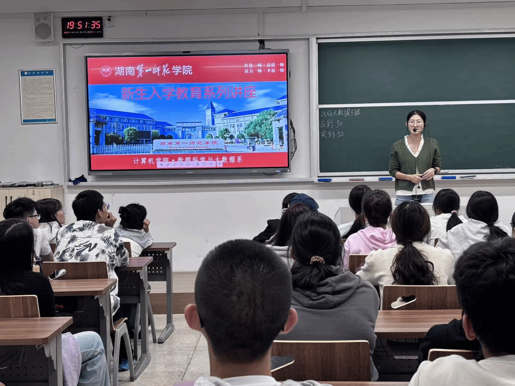 10月13日晚,数据科学与大数据技术专业在怀中南101教室举行了新生入学教育专题讲座。讲座由数据科学与大数据技术系主任马丽莎担任主讲人,2025级该专业全体新生参加。