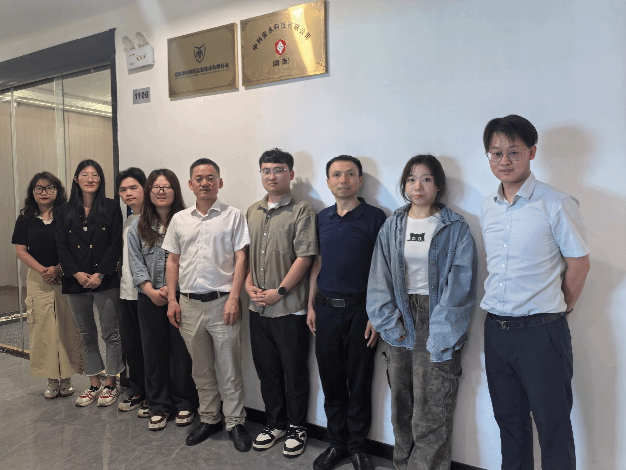 在湖南中科安永科技有限公司,总经理张灿陪同杨恒伏一行看望了在该公司就业的3名2021级计算机科学与技术(商业密码班)应届毕业生。座谈会上,张灿详细介绍了企业发展现状,对公司员工在实习就业中的专业表现给予了肯定。杨恒伏向企业通报了公司最新发展动态,强调将精准对接企业人才需求,拓宽就业渠道,推动计算机类专业实现更高质量就业。双方就深化产教融合、打造商业密码特色人才培养体系等合作方向展开充分交流。