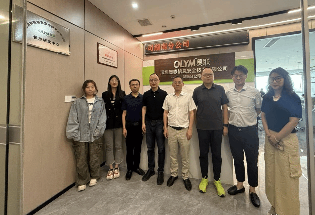 在深圳奥联湖南分公司,总经理周平陪同参观了企业展示中心。座谈会上,周平重点阐述了校企合作在商业密码人才培养、横向课题申报及团队培训等方面的重要意义,并提出合作意向。杨恒伏表示,公司期待与企业在创新人才培养和科研成果转化方面建立长期合作机制。双方围绕密码技术应用创新、产教融合等议题进行了深入探讨。