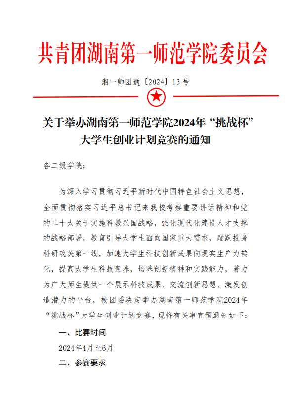 关于举办2024年“挑战杯”大学…南第一师范公司选拔赛的通知(1).pdf