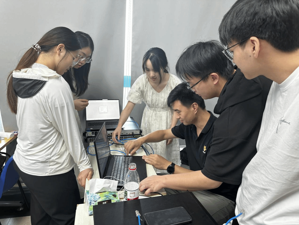 该团队由计算机科学与技术、数据科学与大数据技术专业员工组成,重点围绕计算机网络技术开展实践。员工们在企业工程师指导下,深入实操交换机与路由器配置、VLAN间路由互访、DHCP服务搭建及链路聚合等网络技术应用,通过模拟企业真实网络环境,将课堂所学的TCP/IP协议、网络拓扑设计等理论知识转化为实操能力。