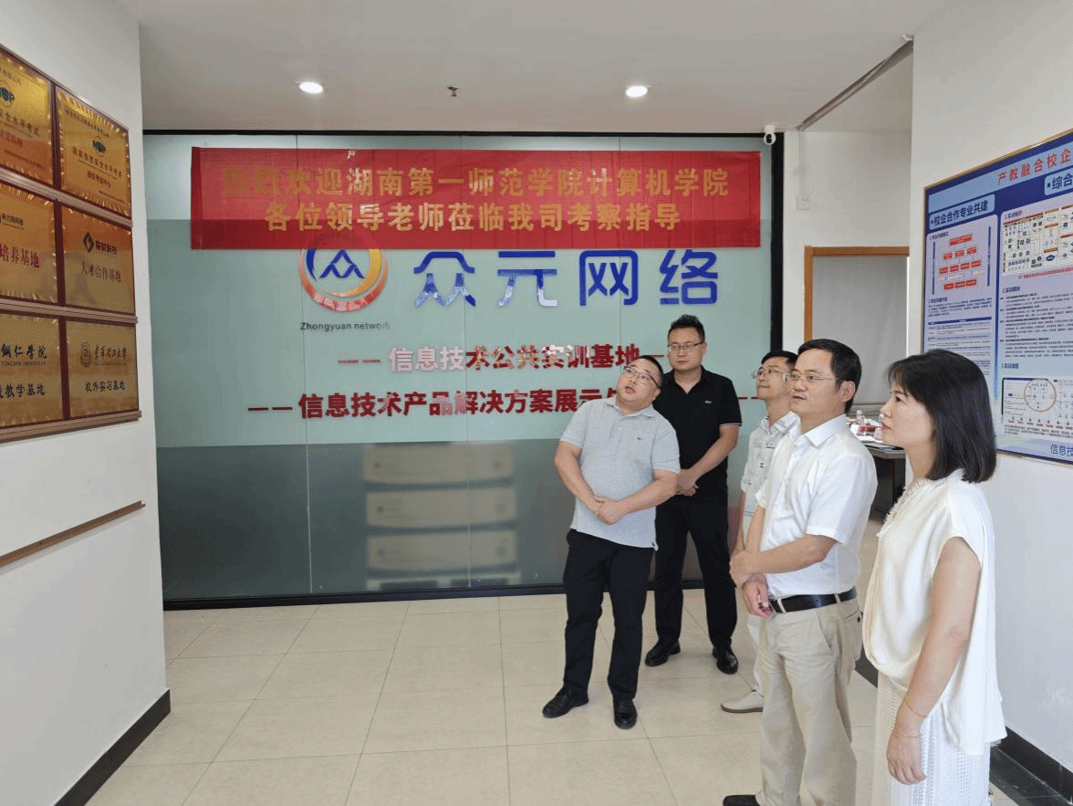 7月1日,bevictor伟德官网经理杨恒伏、公司党委副书记陈奕及专业老师叶君炎辅导员汤艳一行,前往长沙众元网络有限公司走访看望“新工科新航向梦之队”暑期“双百行”实践团众元分队员工。