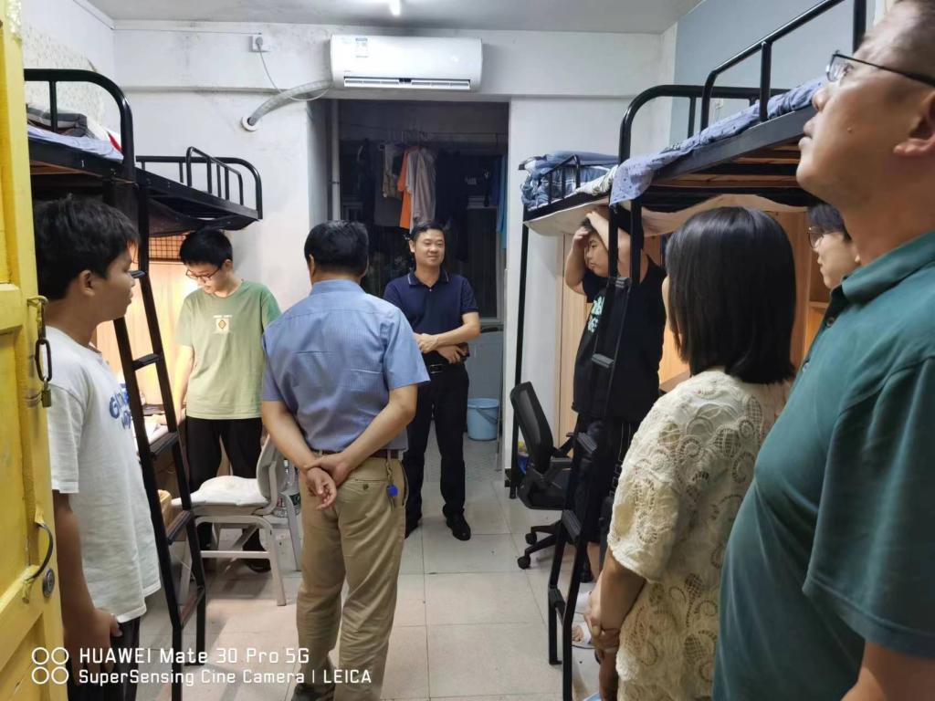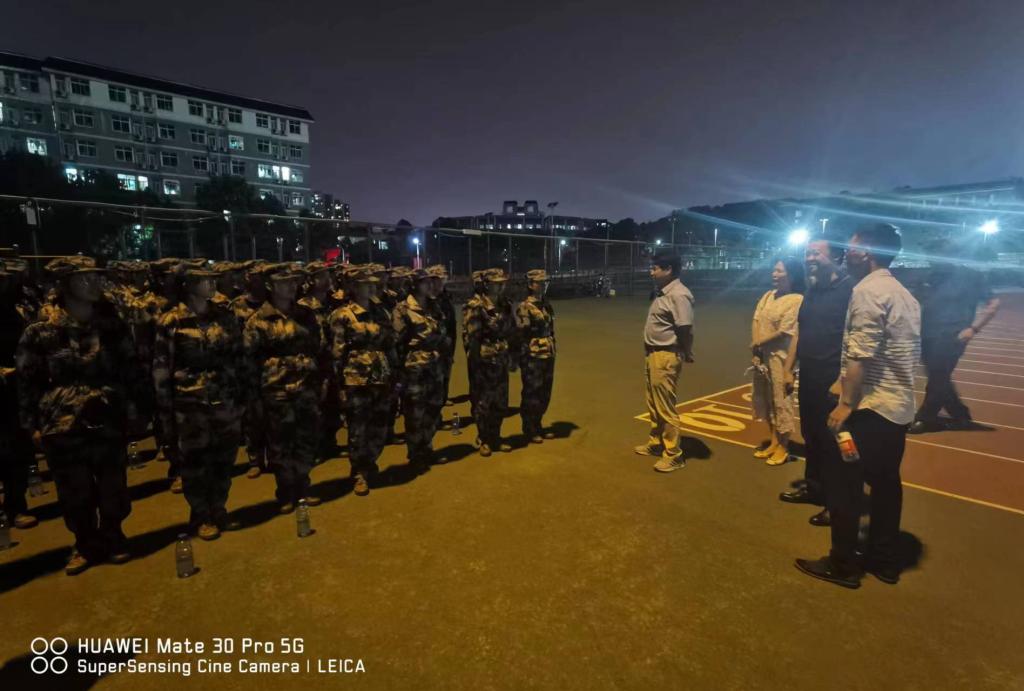 9月21日晚,副董事长周发明在公司党委书记刘立勇、副经理何向阳、公司党委副书记陈奕和全体辅导员的陪同下,来到田径场看望军训员工。对军训员工的晚训表现给予了高度评价,慰问了现场因病无法参加晚训的后勤军训见习员工。周发明一行还查看了我院学生寝室,了解同学们的生活和学习情况,重点询问了同学们英语四六级考试情况以及专业课程作业情况。周发明对我院寝室内务卫生及寝室浓厚的学习氛围给予了肯定,勉励同学们要继续保持良好生活习惯,勤奋学习,争做时代新人。