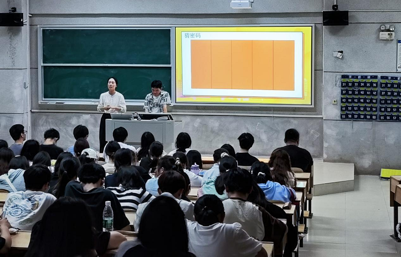 袁莎邀请公司大三密码班的员工现身说法,以“猜数字”游戏入题,帮助与会员工了解密码的概念,阐述了国家对密码行业的政策支撑和行业薪资报酬,重点介绍了密码班员工的实习情况。